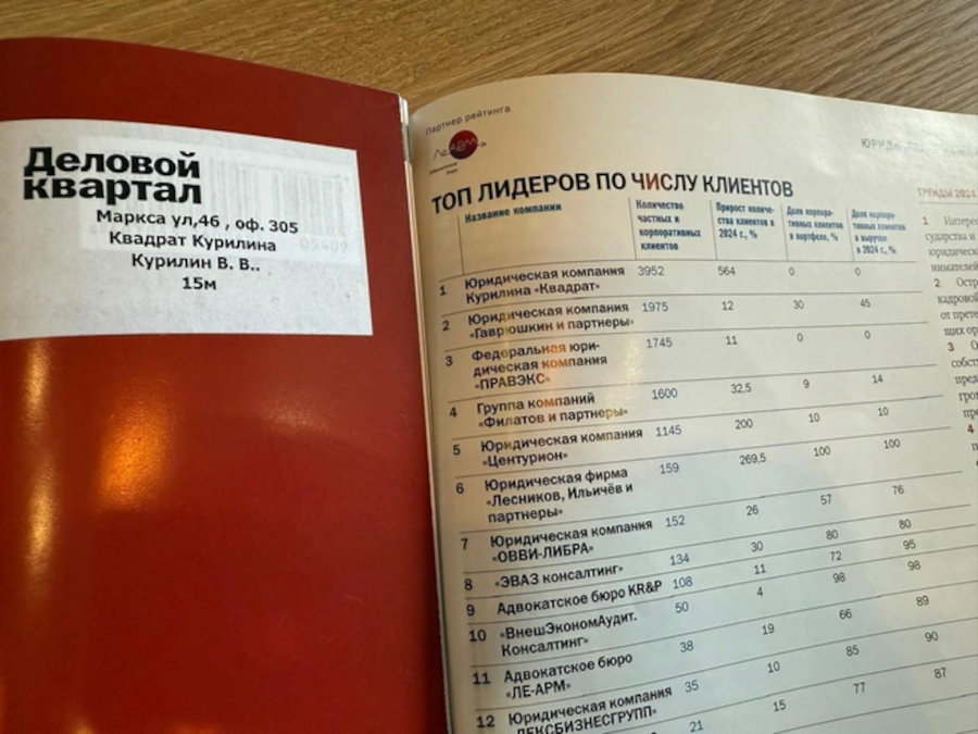 В 2024-2025 гг. компания "Квадрат" заняла первые строчки по числу клиентов в рейтинге журнала "Деловой квартал" .