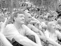 Когда кто-то идет по улицам города с рюкзаком за спиной, прохожие воспринимают его как нечто чужеродное. Но подходит такой турист к берегам Ильменского озера в дни фестиваля авторской песни — и становится одним из многих тысяч таких же, как он. Люди улыбаются, обмениваются на ходу репликами — они заранее настроены на атмосферу общения и праздника. Снова июнь, лето, и ты —на Ильменке! Эти летние дожди 30-летняя Ильменка отмечена обилием звездных гостей. Один из них — московский бард Алексей Иващенко, впервые побывавший на Ильменке. На вопрос о том, какие впечатления у него от фестиваля, отвечает: «Не обманули! Сказали, что есть такая примета: не было случая, чтобы во время Ильменки не шел дождь. И девятого июня он был, да еще по полной программе. Казалось, что накопился за все эти тридцать лет и вылился весь сразу. Кстати, это не помешало прохождению концертов и всех творческих процессов». П словам Алексея Иващенко, уже ночью после концерта он заскучал в своем корпусе и пошел в палаточный лагерь посмотреть, что там происходит. В лагере не смолкала жизнь, люди сидели у костров и пели. «И я понял, что главное здесь, на фестивале — это атмосфера. Здорово, что есть такое место, где люди собираются, чтобы просто петь песни». Впервые на Ильменке Начальник управления культуры горадминистрации Людмила Орлова: — В этом году на фестивале впервые открыта новая концертная площадка — сюда приезжает столько талантливых людей, что они уже не помещаются на прежних сценах. Надо сказать, что все известные барды, приехавшие на Ильменку, отработали на всех, теперь уже четырех концертных площадках фестиваля: главной сцене, лесной эстраде, в детской республике, новой площадке, — сумев охватить большое количество зрителей. Из особенностей этого юбилейного фестиваля отмечу приезд Тамары Гвердцители. Очень хотел, но не смог по состоянию здоровья приехать на фестиваль Александр Городницкий. Жизнь фестиваля Один из первых организаторов Ильменки Константин Просеков (г. Челябинск): — Фестиваль — это сложный организм. В нем родилось уже несколько самодостаточных структур. Например, на главной сцене происходят все помпезные шоу. Лесная площадка по-прежнему чтит традиции авторской песни и пускает на свою сцену далеко не каждого исполнителя. Шестой год работает детская республика, в которой избираются свой парламент, губернаторы, действует самоуправление. Здесь очень много работают с детьми, и подрастает хорошая талантливая смена нашим бардам. Вообще Ильменка — это второй по величине фестиваль в стране после Грушинского, на который ежегодно съезжаются до 25 тысяч человек. Как спелись Митяев и Гвердцители Н этот вопрос знаменитости сначала не хотели отвечать, а затем Митяев бросил полушутливое: «Ничего личного». Тем не менее секрет выдали: оказалось, что познакомились артисты на одном из концертов в Кракове, где Гвердцители, «как никто другой» («Вы в этом убедитесь на сегодняшнем концерте», — произносит Митяев), пела песни Булата Окуджавы. Почему Гвердцители приехала на Ильменку? Ответ опять с некоей долей шутки: сюда едут многие, потому что здесь хорошо.