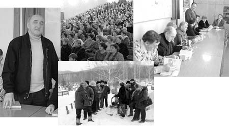 Лонид Оболенский, проживший в Миассе 19 последних лет своей жизни, похоронен на северном кладбище. На его могиле возвышается большой деревянный крест со скромной надписью «Инок Лаврентий. В миру Леонид Оболенский». 21 января, в день столетия здесь побывали члены народного фотоклуба «Импульс» — миасские друзья Оболенского, его единомышленники, ученики. Рядом с их цветами легли букеты тех, кто приезжал к Оболенскому в Миасс из Челябинска, Екатеринбурга, Москвы... «Когда Леонид Леонидович уехал из Челябинска, то приобрел еще большую силу над нами — несмотря на огромные расстояния к нему шли, ехали тысячи людей», — вспоминал К. Шишов. Ве молча стояли у Его могилы, казалось, все уже сказано, но вновь сами собой нахлынули воспоминания и даже сформулировалось понятие — нравственная школа Оболенского. Это когда Леонид Леонидович, возвышая людей, каждому умел подарить тепло, дать искру знания, мудрости, принимать их любыми и дарить радость. Народный артист России, кинорежиссер Валерий Усков, известный нам, в частности, по фильмам «Тени исчезают в полдень» и последнему — «Нина. Расплата за любовь», очень образно, но точно сказал, что он был весной несмотря на пасмурную жизнь. «Если бы Леонид Леонидович остался в Москве, так не обогатил бы Россию», — добавил Сергей Мирошниченко, снявший фильм «Таинство брака» — притчу о последней любви. А художник Анна Бутакова, запечатлевшая Оболенского в своих работах, плача вспоминала о его жажде общения, о том, как он смотрел на дверь, ожидая новых и новых гостей. Как позвонив в дверь, часто слышала стук по полу и его голос: «Я здесь, не уходите, просто не могу быстро дойти»... Пиехав в Миасс, кинематографисты не могли пропустить встречу с его главой. Владимир Стиллианович представил гостям наш город в Золотой долине, а они, в свою очередь, поблагодарили миасцев за теплый прием. Кирилл Шишов назвал Миасс одним из самых талантливых городов Челябинской области и выразил надежду, что их визит ускорит появление мемориальной доски Леониду Оболенскому на ДКиТ «Прометей». В продолжение темы Валерий Усков говорил о распавшейся связи времен: «Если в доме висят портреты дедов и прадедов, это крепкая семья. Надо уходить от беспамятства, возвращать людей к культуре, духу, мечте». Ярополк Лапшин, знавший Оболенского целых 60 лет, назвал его аккумулятором, прикасаясь к которому каждый получал импульс. Режиссер фильмов «Угрюм-река», «Демидовы» не первый раз в Миассе — в окрестностях нашего города он снимал частичные эпизоды фильма «Я объявляю вам войну». Втот же день кинематографисты провели творческую встречу с миасцами. Давно большой зал ДКиТ «Прометей» не был таким полным. А вчера наш город посетил режиссер Леонид Марягин, у которого с Миассом связаны не только воспоминания о Леониде Оболенском: он пошел в школу в пос. Тургояк. На встречу со зрителями режиссер привез свой новый фильм «101-й километр». Влею судьбы Миасс стал последним пристанищем великого Мастера, пережившего все унижения эпохи, сумевшего остаться «очень нескучным и человечным человеком» и, главное, живым после смерти. Все, кто приехали поклониться своему Учителю, как один, благодарили Миасс за память — в Москве, к сожалению, мало о ком помнят...