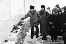 Взле вечного огня и состоялся митинг. Его открыл заместитель главы администрации Сергей Скоков, который сам в составе советского контингента принимал участие в той войне. Вступавшие на митинге дали историческую оценку войны в Афганистане, а председатель городского совета ветеранов Валентин Филь при этом заявил, что в настоящее время в стране уделяется недостаточное внимание и ветеранам Великой Отечественной войны, и воинам-афганцам, и участникам боевых действий в Чечне. Хотя при этом организаторы подчеркнули, что митинг не политический. Его цель — почтить память павших и напомнить обществу о живых участниках афганской войны. Мтинг окончился минутой молчания. Тишину троекратно прерывали оружейные залпы — погибшим отдавались воинские почести. После этого всех желающих пригласили в конференц-зал администрации. Там прошла концертно-тематическая программа, посвященная афганским событиям. День воина-интернационалиста завершился в МЭМТе, где также была представлена аналогичная программа.
