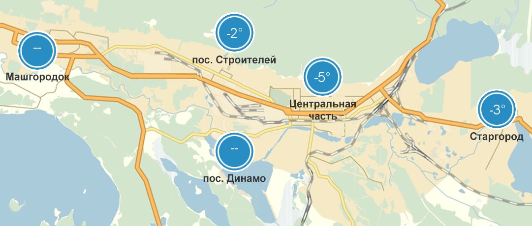 | пос. Строителей | -2.2 °С |